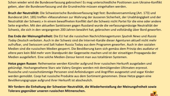 Ukraine-Konflikt: Für Neutralität, Meinungsfreiheit und Toleranz!