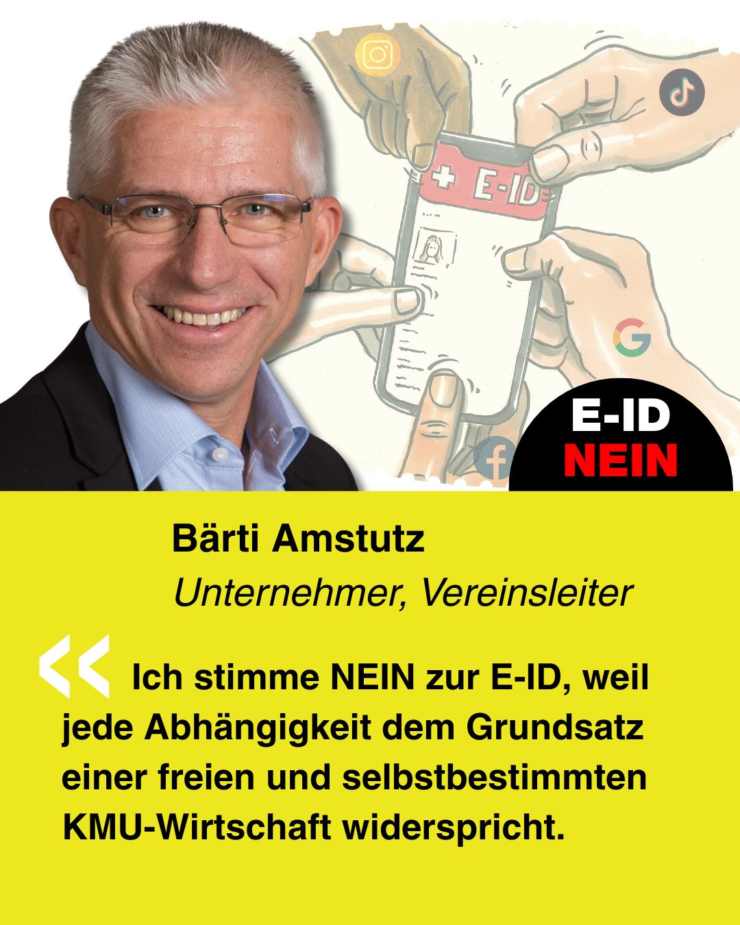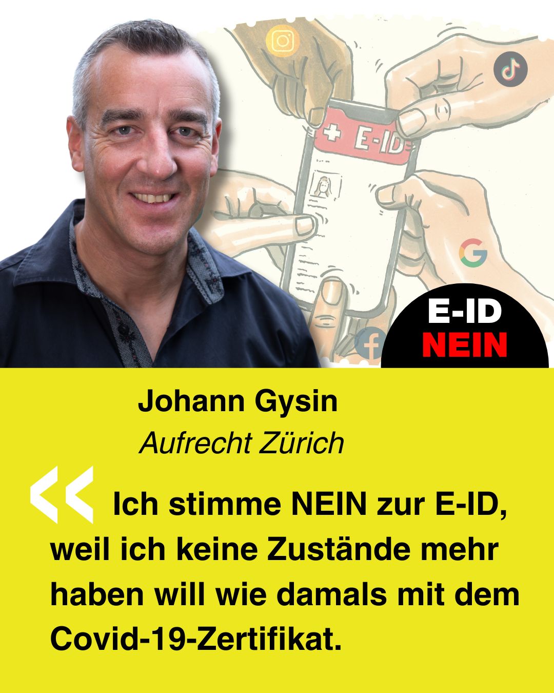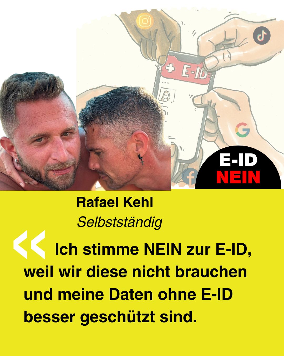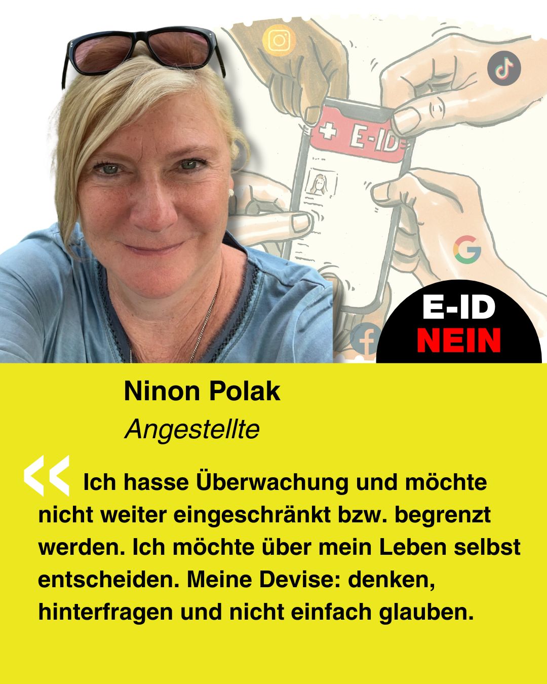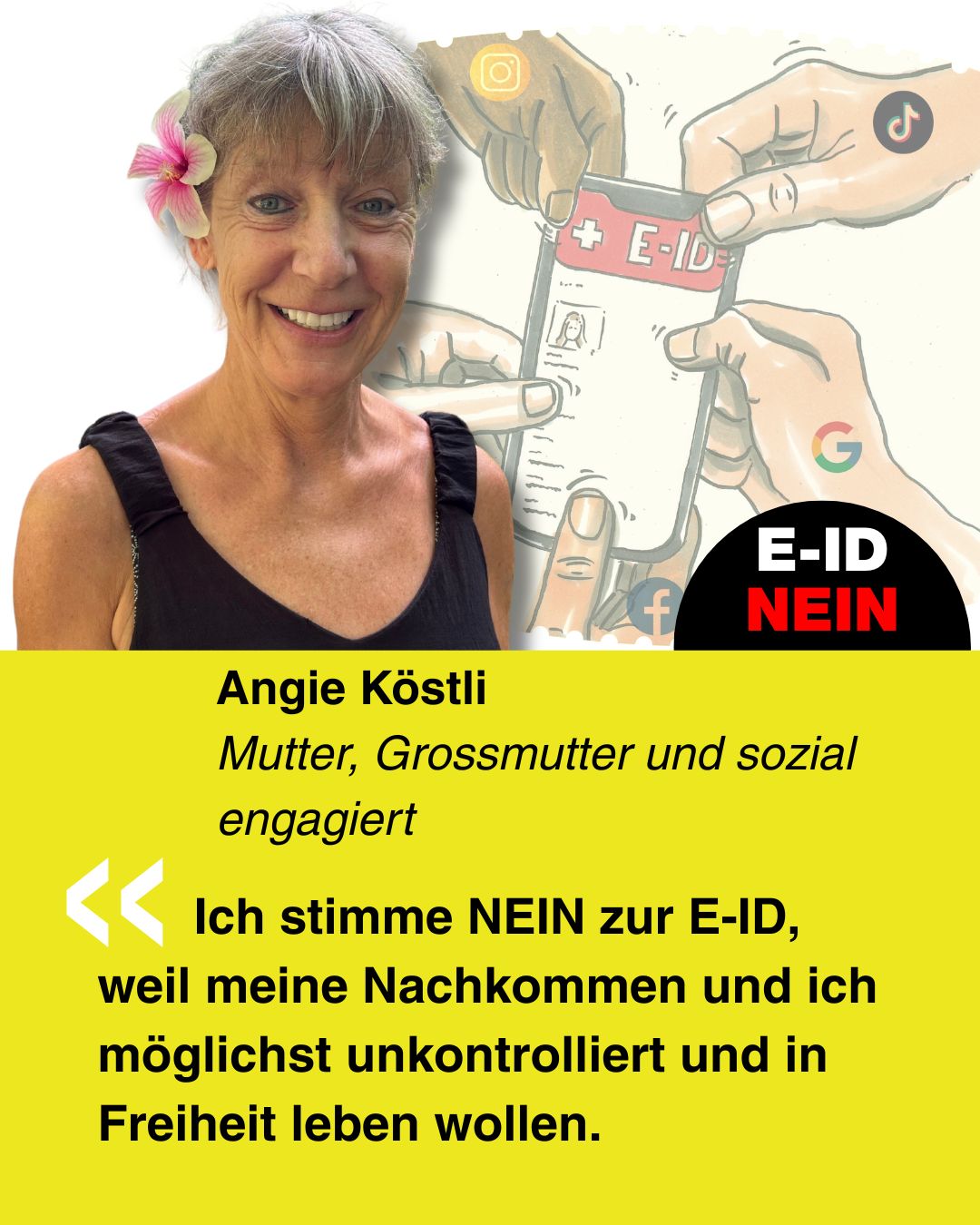 Bekenne Farbe gegen die E-ID. Erstelle Dein ganz persönliches Social-Media-Bild und poste dieses auf Social-Media.