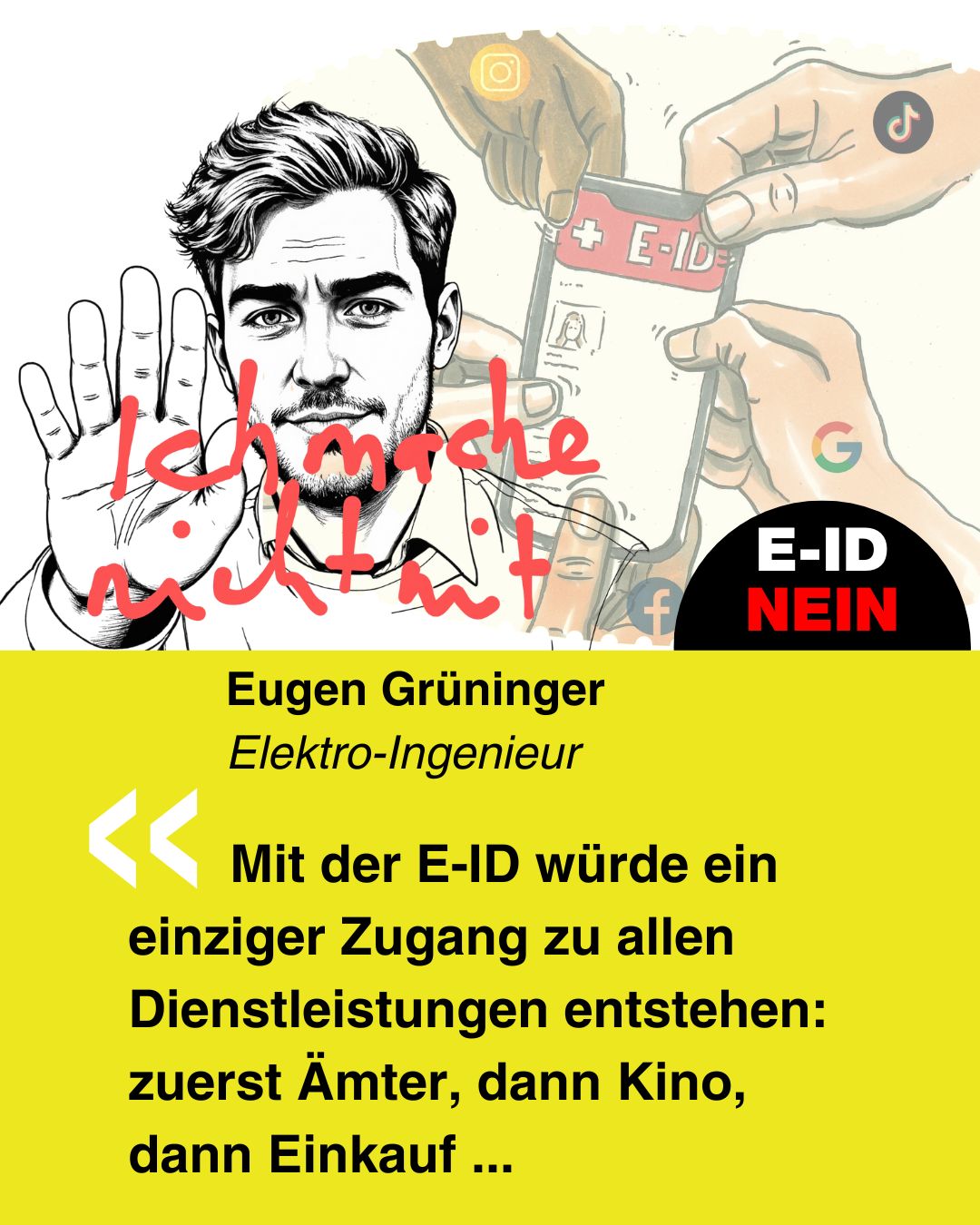 Wie stark unsere Nein-Kampagne ist und ob die E-ID angenommen oder abgelehnt wird, entscheidest auch Du!